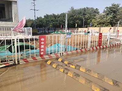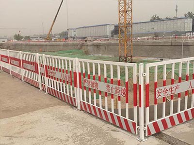 開挖深度超過(guò)2m的基坑周邊必須安裝防護(hù)欄?;臃雷o(hù)網(wǎng)安裝方便,可重復(fù)使用。開挖深度超過(guò)2m的基坑周邊必須安裝防護(hù)欄桿。